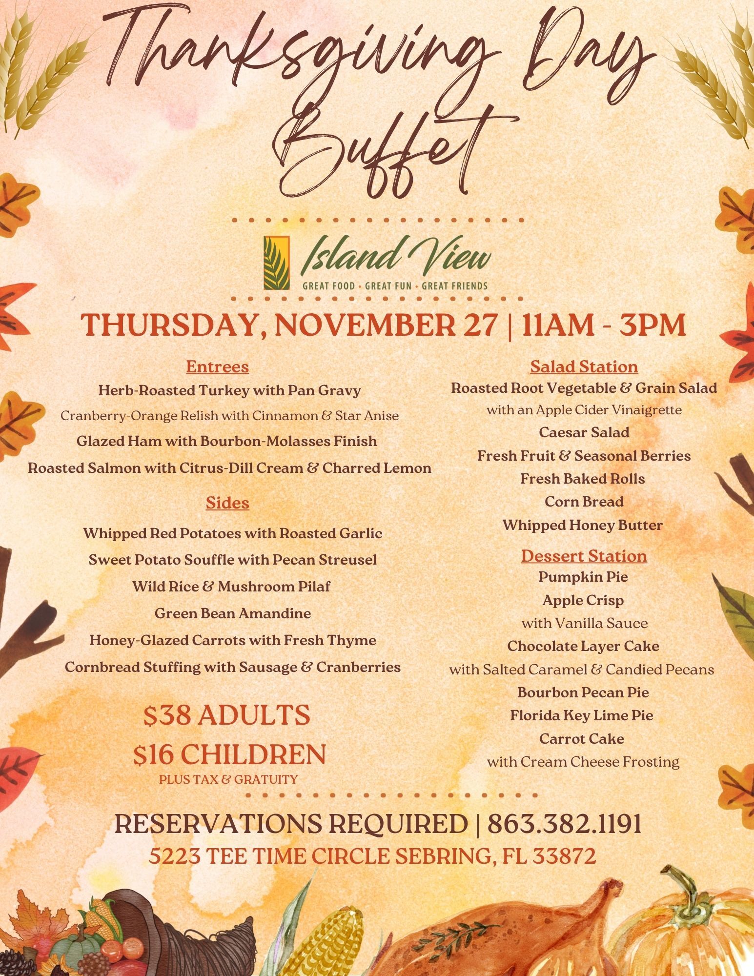 Upcoming Events 35 events found. There are no upcoming events. There are no upcoming events. Events Search and Views Navigation Search Enter Keyword. Search for Events by Keyword. Find Events Event Views Navigation Month List Month Day This Month 12/14/2025 December 2025 Select date. Calendar of Events There are no upcoming events. Latest Past Events Nov 27 2025 November 27 @ 12:00 pm Thanksgiving Buffet Oct 30 2025 October 30 @ 5:00 pm Ladies Night Oct 25 2025 October 25 @ 5:00 pm Amateur Night VISIT OUR ONLINE STORE The perfect place to get a Sun ‘N Lake golf gift card for you or a friend! BECOME A MEMBER Explore our benefits and options and make Sun ‘N Lake your golfing ho GET SOCIAL WITH US Follow us on Facebook to stay up-to-date on the latest at Sun ‘N Lake!